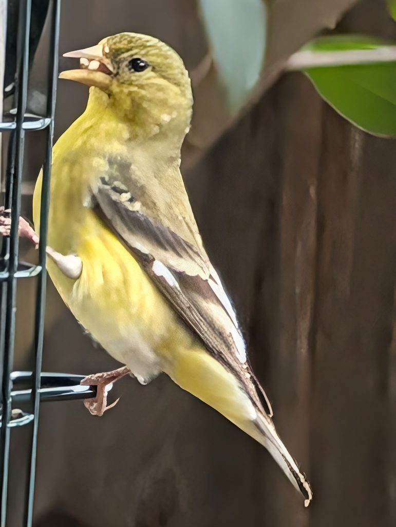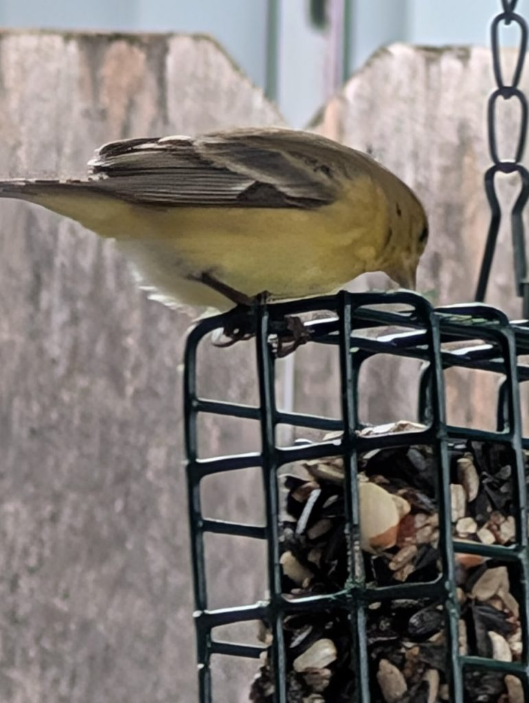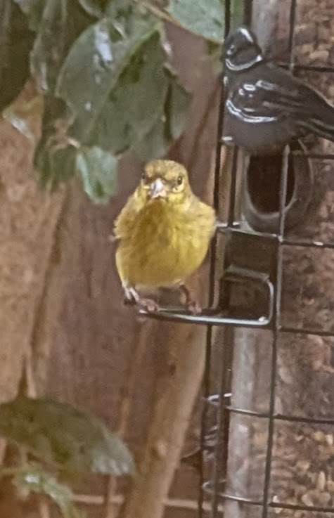 These cuties (male and female) started showing up at the feeder last week. They’re very small and apparently fearless, and anytime they’re not chirping they’re eating. And they’re besties –whenever one shows up the other arrives within a few seconds.